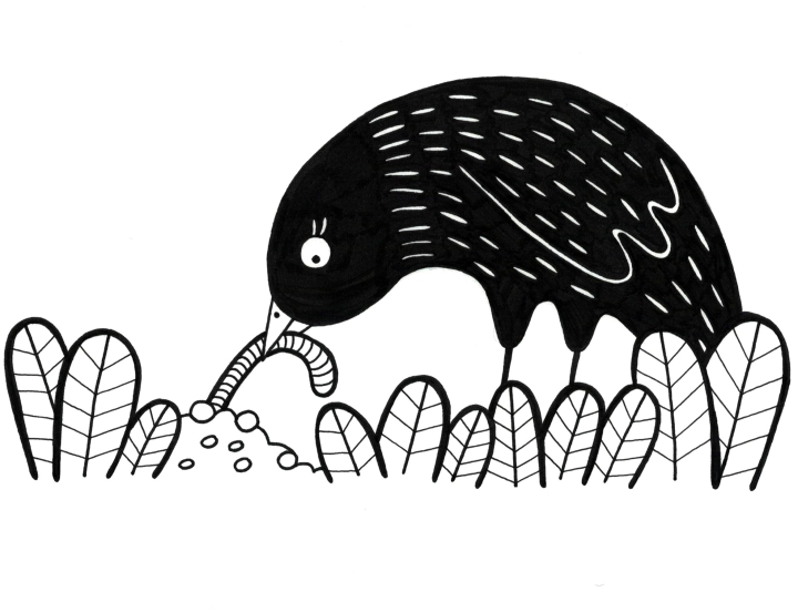 Takto poučeni se vydali znovu na lov. O kousek dál lezla ze země další žížala. Přiskočili k ní. Omotali si ji kolem zobáčků, zapřeli se nožičkama, pomohli si křidélky a tahali a tahali, a šup. Žížala byla venku.