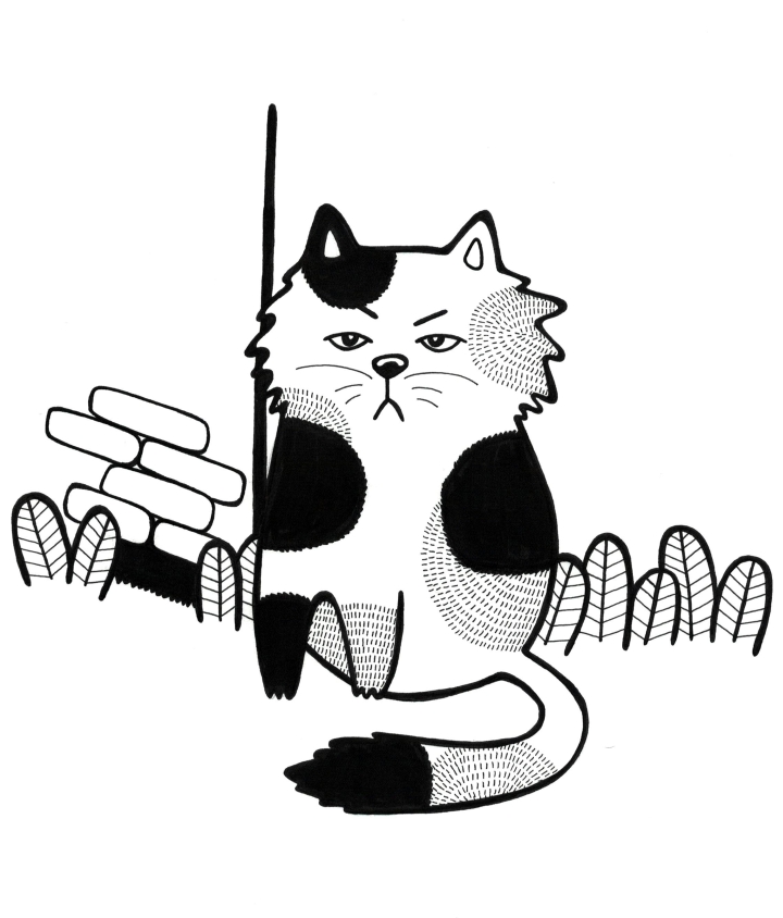 Konečně bylo vody tolik, že se přelila přes okraj! Přímo na cíl! A ze strakaté kočky byla najednou kočka mokrá. Uskočila stranou. Kočky se nerady koupou.